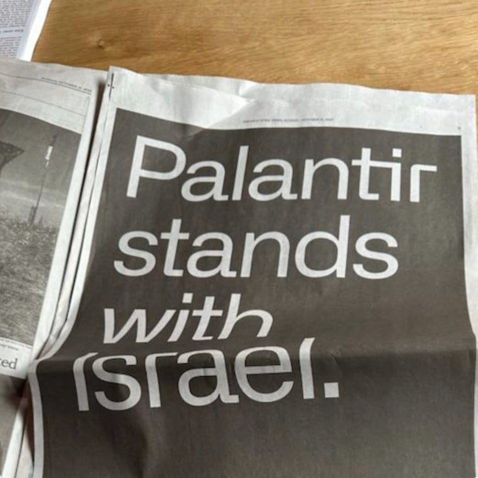 Today Palantir is firmly embedded in the U.S. military-industrial infrastructure. Its core customers include the heavyweights of America’s security bureaucracy—CIA, FBI, Department of Homeland Security, NSA, ICE—and business is growing fast. With Maven, Palantir used AI for battlefield awareness and opened Pandora’s Box. I think we will watch what spills out in the coming years on a global scale. Shuddering.